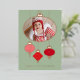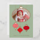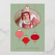 Una simple tarjeta de Navidad moderna con adornos rojos de ALEGRÍA sobre un fondo verde marino. Los acentos de pan de oro metálico realzan los adornos, el texto y la fotografía de su miembro más nuevo de la familia con un brillo lujoso para compartir esos recuerdos preciosos.