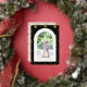 La luna inspirada en el arte de los años 20 y el diseño de estrellas en una tarjeta de Navidad con una foto personalizada y un saludo de vacaciones.