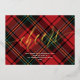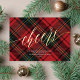 Esta tarjeta de vacaciones de negocios moderna y elegante presenta un gran script de caligrafía "cheers" en lámina dorada sobre un fondo festivo rojo tartán. La parte posterior de la tarjeta tiene el mismo patrón rojo tartán. ¡Cree una gran impresión en sus clientes y contactos comerciales con una tarjeta de vacaciones de lámina real este año!