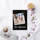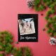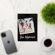Tarjeta de Navidad hawaiana moderna con fondo negro elegante, foto de familia cuadrada, palmeras con lámina de oro real, felicitaciones de la temporada "mele kalikimaka" y el nombre de su familia. La lámina en este diseño se puede cambiar a oro rosa o plata.