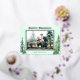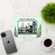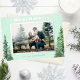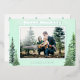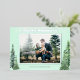 Un diseño de vacaciones elegante y clásico con tema de naturaleza. Árboles de acuarela en cada esquina de la tarjeta de Navidad con escritura de papel de aluminio y marco de papel de aluminio que rodea la foto. Papelería a juego como etiquetas de dirección de devolución también disponibles.
