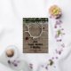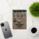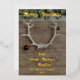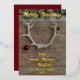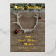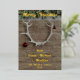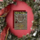 Cuerno festivo adornado con adornos en un fondo de madera rústica con hiedra que cuelga encima. Solo agrega el nombre de tu familia y saludo de vacaciones - papel de aluminio real