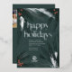 Esta tarjeta de vacaciones no foto de la empresa cuenta con un borde festivo de agujas de pino y bayas de invierno enmarcando un mensaje de Relieve metalizado de plata Happy Holidays. El frente destaca el logo de una compañía y el mensaje de gratitud. En la parte posterior se incluye una foto de la empresa y un logotipo y se ofrece un espacio para un mensaje adicional.