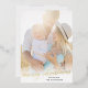 Esta elegante tarjeta de foto navideña presenta un guión brillante en un Relieve metalizado de Relieve metalizado oro real con un respaldo rayado y espacio para un breve mensaje de vacaciones. Sube tu propia foto vertical y personalizar la información para incluir el saludo de los Navidades de tu familia.
