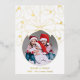 Celebre la temporada con esta elegante tarjeta de Navidades de una sola foto con un diseño adornado con un Relieve metalizado dorado, luces de cuerda y tipografía elegante. La foto de tu familia está enmarcada en un bauble festivo con una reverencia audaz y personalizada con el nombre y el año de tu familia. Una forma lujosa y alegre de compartir la alegría de las vacaciones, esta tarjeta es perfecta para aquellos que aman la elegancia moderna con un toque lúdico.
