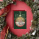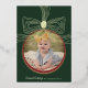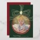 Festiva Con Relieve Metalizado Tarjeta fotográfica de oro verde Bow y Bauble para