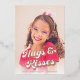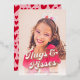 Un diseño de tarjeta fotográfica de estilo retro con tipografía de oro rosa que dice "Abrazos y besos" y un saludo El día de San Valentín personalizado con firma.