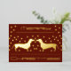Esta elegante tarjeta de Navidad de dachshund presenta dos adorables dachshunds rodeados de lunares dispersos, todos en su elección de foil de oro, plata o rosa. El rico fondo rojo borgoña hace que los elementos metálicos resplandezcan. El saludo es "Feliz Navidad", pero puede personalizarlo. La parte trasera de la tarjeta incluye más lunares junto con un mensaje de vacaciones personalizado y una línea de firma para que la personalice con sus nombres.