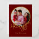 Festiva Con Relieve Metalizado Tarjeta Roja de Vacaciones de Foto Familiar Clásic