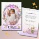 La foto de tu bebé cabría fácilmente en esta hermosa tarjeta fotográfica con un conejito, pollitas y una floral linda alrededor de una plantilla en forma de huevo para tu foto. En la parte trasera hay un saludo con más ilustraciones de conejo y pollo. Esta es una carta única, y todos los artículos han sido pintados a mano. Semana Santa!