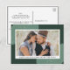 Celebra las vacaciones con estilo enviando una postal de fotos de vacaciones de moda a tus amigos y familia! Esta moderna tarjeta postal de vacaciones dorada de confetti cuenta con un toque de color verde claro con un fondo verde oscuro, falsos confeti de Relieve metalizado dorado y marcadores de posición para tu foto y texto.