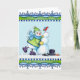 Tarjeta de saludo de invierno de un muñeco de nieve construyendo un muñeco de nieve.