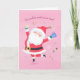 Con un suave fondo rosa, Santa baila de alegría rodeada de fiestas de temporada.
