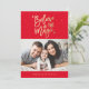 Comparte la magia de los Navidades enviando a tus seres queridos una moderna tarjeta de fotos de vacaciones. Esta elegante tarjeta de vacaciones incluye un falso texto de Relieve metalizado de oro que dice "Believe In the Magic", fondo rojo con puntos rojos claros y marcador de posición para tu foto y texto personalizado.