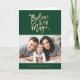 Comparte la magia de los Navidades enviando a tus seres queridos una moderna tarjeta de felicitación fotográfica. Esta elegante tarjeta de felicitación navideña incluye un texto falso en Relieve metalizado dorado que dice "Crea en la magia", fondo verde con puntos verdes claros y marcador de posición para tu foto y texto personalizado.