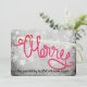 Un gancho crochet con hilo de loopy que explica "Merry en esta tarjeta de Navidades "hechos a mano con amor" para sus proyectos artesanales.