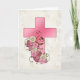 Festiva Cruz rosa con flores 1 tarjeta de felicitación cri