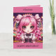 Festiva Cute Chibi Chica pelo rosa Tarjeta de cumpleaños