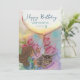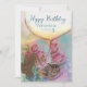 Festiva Cute Kitten Chica tulips Tarjeta de cumpleaños