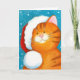 Un naranja lindo gato con un sombrero de Santa y rodeado de nieve. Tarjeta de Navidades festivos con mensaje de vacaciones de personalizable dentro. Borrar texto personalizado si desea que la tarjeta esté en blanco dentro. Pintura © 2009 Lisa Marie Robinson
