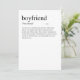 Añade un toque de humor y estilo a tu regalo del Día de San Valentín con esta divertida tarjeta de "Definición de Novio". Con tipografía ingeniosa y minimalista y un diseño limpio, transmite un mensaje divertido y ligero que seguramente hará sonreír a tu pareja. También hay un espacio en blanco donde puedes incluir tu mensaje manuscrito personalizado para él. ¿Quieres agregar una característica ingeniosa y personalizada a la definición? Comunícate conmigo a: shahirah.creates92@gmail.com, y la haré única para ti.
