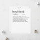 Agrega un toque de humor y estilo a tu regalo del Día de San Valentín con esta divertida tarjeta de "Definición de Novio". Con tipografía ingeniosa y minimalista, y un diseño limpio, transmite un mensaje divertido y ligero que seguramente hará sonreír a tu pareja. También hay un espacio en blanco donde puedes incluir tu mensaje manuscrito personalizado para él. ¿Quieres agregar una característica ingeniosa y personalizada a la definición? Comunícate conmigo a: shahirah.creates92@gmail.com, y la haré única para ti.