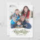 Deseos Cálidos | Tarjeta de Foto de Vacaciones - Verde. Elke Clarke© Otros colores disponibles en nuestra tienda en www.zazzle.com/epclarke. Los copos de nieve y remolinos y el efecto de nieve falsa hacen que esta sea una tarjeta modelo versátil y fácil de usar para agregar su foto y nombre de familia. Diseño simple y lindo para crear su propia tarjeta de salutaciones de vacaciones única y personalizada para enviar a familiares y amigos.