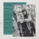 Envía a tus amigos y familiares una elegante tarjeta de fotografía de las fiestas en esta temporada. La elegante tarjeta de fotografía de las fiestas presenta las palabras "Los mejores deseos" en una superposición de fuente de escritura elegante, marcadores de posición de fotografía y texto, y un diseño de rayas verdes y blancas en el reverso.
