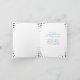 18 pt de grosor / 120 lb de peso. Blanco suave, textura suave tipo cáscara de huevo.