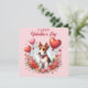 Tarjeta del día de San Valentín con un Fox Terrier con flores y globos en forma de corazón.