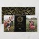 Elegante monograma de invierno dorado, tarjeta fotográfica de vacaciones 2 en negro clásico. Características de la tarjeta que coinciden con el respaldo del patrón y varias líneas de plantilla para el saludo de su personalizado.