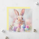 Una tarjeta Happy Easter con un conejito y huevos coloridos. Esta carta es plana y de dos lados.