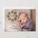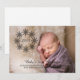 Tarjeta plana de fotos Wreath Wreath, sencilla y dulce, con un elegante puesto de corona negra adornado con un círculo de copos de nieve de bonito. Esta encantadora tarjeta plana fotográfica es perfecta para compartir la alegría de la primera Navidad de su bebé y es fácil de personalizar con una foto y los detalles de su nuevo hijo. Haga clic en "personalizar" para buscar opciones de personalización adicionales. Fotografía © Storytree Studios, Stanford, CA