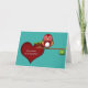Este búho lindo en una rama del manzano contra un fondo grande del corazón sería una tarjeta maravillosa de la tarjeta del día de San Valentín a dar a cualquier persona. El texto interior es adaptable.