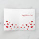 Tarjeta El día de San Valentín con un par de pequeños pájaros y corazones flotantes cortados en papel con fondo de tela roja rodeado de notas musicales. La tarjeta dice "haz que mi corazón cante". Adentro está adornado con corazones rojos flotantes. Personalizar las palabras o fuentes. ¡Bonita carta para él o ella!