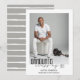 Celebra la graduación con esta tarjeta de foto única. Su foto personalizado como pieza central junto con el guión minimalista moderno "clase de graduados" con su información personal con una fuente elegante. El reverso es gris con rayas horizontales artísticas