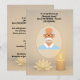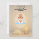 Un diseño de tarjeta conmemorativa tranquilo y elegante con un fondo beige suave, velas brillantes, flor de loto y cruz sutil. Ideal para programas funerarios o invitaciones de recuerdo.