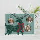 Envíe un saludo de vacaciones realmente personalizado con esta elegante tarjeta de Navidades, con una sofisticada silueta de renos adornada con un arco rojo. La paleta verde y roja combina los colores clásicos con un toque festivo actualizado. Las coronas de reno sostienen tres ornamentos, cada uno de los cuales sirve como marcador de posición para sus preciadas fotos. Carga fácilmente tus propias fotos en los adornos para crear una tarjeta única y sentida que celebra la alegría y el calor de la temporada. Para facilitar la colocación, puede recortar las fotos a un cuadrado antes de subirlas. En caso contrario, utilice la Herramienta de edición para volver a colocar. Personalice el frente con el año, su nombre familiar y 3 fotos, mientras agrega un mensaje y firmas especiales en la parte posterior. © Kimbellished, LLC