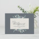 Elegantes coronas florales azul-verde pastel decoran una tarjeta gris-azul profunda con elegante tipografía dramática. Añadir nombre y año al frente y un mensaje personal al fondo. Una tarjeta sofisticada de moda para enviar mensajes con temas de otoño o de agradecimiento a clientes, familiares y amigos. Por favor, contáctame si deseas una mayor personalización. Encontrará más diseños de Acción de Gracias y Caída en mi tienda