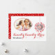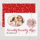 Moderna, simple pero elegante y elegante, tarjeta de foto plana roja de Año Nuevo 2023 con una foto ovalada, otra foto colgante con el texto curvo "Feliz Año Nuevo" a su alrededor y también el texto "Veintitrés" todo en rojo.