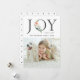 Envíe alegría de vacaciones a su familia y amigos con esta elegante y moderna tarjeta de fotos de vacaciones de JOY floral con el patrón de puntos de polka en blanco y negro en la parte trasera.