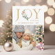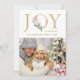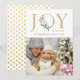 Envíe vítores de vacaciones a su familia y amigos con esta elegante y moderna tarjeta de fotos de vacaciones de oro floral JOY con el patrón de puntos de polka dorado en la parte trasera.