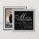 Elegante estilo le desea a la familia y amigos una Feliz Navidad y un Feliz Año Nuevo al frente, con un retrato familiar de tamaño completo enmarcado en la parte trasera.