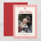 Para la familia, esta temporada de Navidades. Esta tarjeta de felicitación roja y blanca "Joyful Holiday" presenta un elegante fondo a rayas. Esta tarjeta de felicitación puede ser personalizada con la inclusión de su propia elección de foto y elección de texto en la parte inferior del diseño. Esta tarjeta de saludo es colorida, luminosa, elegante y elegante. Es la tarjeta de saludo ideal para la familia que este Navidad.