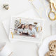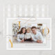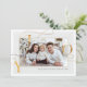 Celebre la temporada con esta lujosa tarjeta de vacaciones "Joy", que presenta un diseño elegante de tipografía de Relieve metalizado de oro falso y elegantes remolinos enmarcados en una preciada foto familiar en una paleta suave, blanca y de marfil. La sofisticada disposición destaca la palabra "JOY" en letras elegantes y fluidas, lo que la convierte en un bello centro para sus saludos de vacaciones. Como parte de una colección de vacaciones cohesiva, este diseño también está disponible en etiquetas de regalo a juego, sobres y más, lo que le permite crear una apariencia coordinada y pulida para toda su correspondencia de vacaciones. Perfecto para compartir el calor festivo y la elegancia con amigos y familia.