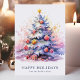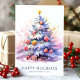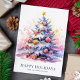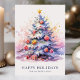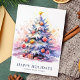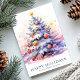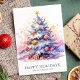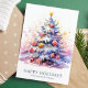 Esta hermosa tarjeta de vacaciones ilustrada incluye un árbol de Navidad festivo adornado con ornamentos y regalos, enviando sentidos deseos de tu familia a otros. La suave acuarela aporta un toque elegante, perfecto para compartir el calor y la alegría durante las vacaciones.