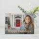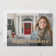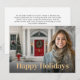 Una cuidadosa tarjeta de festividad fotográfica para la temporada de Navidades diseñada para que un inquilino envíe a los clientes que han apoyado durante el año. En este ejemplo se muestra una foto de muestra de un inquilino parado frente a una hermosa y elegante casa decorada para las vacaciones de los Navidades. Una nota personal de agradecimiento y saludo de vacaciones se incluyen en una plantilla de texto en la parte posterior de la tarjeta. Reemplace la foto de ejemplo con la foto deseada y personalice el saludo en la parte posterior de la tarjeta con el texto deseado. Es una forma maravillosa de ofrecer saludos de vacaciones a sus clientes de negocios y un círculo de contactos.