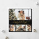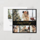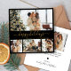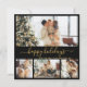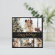 Elegante caligrafía Minimalista negro y oro 4 Collage de fotos Merry Christmas Script Tarjeta de vacaciones. Esta plantilla festiva de cuatro (4) fotos para tarjetas navideñas, mimánica, festividad, muestra un collage de fotos de bonito y dice "¡Felices Fiestas!" El texto de bienvenida de "Happy Holidays" está escrito en un hermoso tipo de letra con letras a mano y con un giro de 180 cm. En el reverso con una plantilla de texto de saludo con un pequeño garabato cardíaco en blanco y una plantilla de foto horizontal. Tarjeta de saludo de bonito para su familia y amigos en temporada de vacaciones para Navidades.