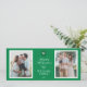 Monograma y Escudo Elegant Green Holiday Photo Card Celebra la temporada en un estilo atemporal con esta hermosa tarjeta de fotos de vacaciones, con un rico fondo verde con pinstripes sutiles y un elegante guión blanco. Este diseño se centra en un mensaje festivo, "Felices Fiestas" junto con el nombre de su familia, coronado con un monograma de familia de personalizables para un toque personal. La distribución de la fotografía doble ofrece espacio para dos retratos familiares muy apreciados, perfectamente enmarcados en crudos bordes blancos que aportan un contraste refinado al fondo verde profundo. Perfecto para difundir alegría entre amigos y seres queridos, esta tarjeta de vacaciones captura la calidez de la temporada con un moderno toque clásico. La elegante tipografía y la sencilla disposición garantizan que el mensaje de su familia brille sin distracciones. Ya sea que estés conmemorando un año lleno de hitos o simplemente compartiendo amor y gratitud, este diseño hace una sofisticada declaración que destaca en cualquier buzón. Personalizable total con el nombre de su familia, año e imágenes personales, esta tarjeta ofrece una hermosa manera de crear recuerdos duraderos. Imprimido sobre papel de alta calidad, es una elección ideal para aquellos que aprecian la elegancia tradicional con un toque de encanto moderno. Haz que tus vacaciones sean inolvidables compartiendo un poco de alegría con los que más importan.