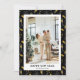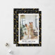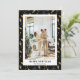 Fotografía moderna en negro y oro de Año Nuevo con vino espumoso, gafas, fuegos artificiales y aliño. Personaliza fácilmente esta elegante tarjeta de vacaciones en línea.